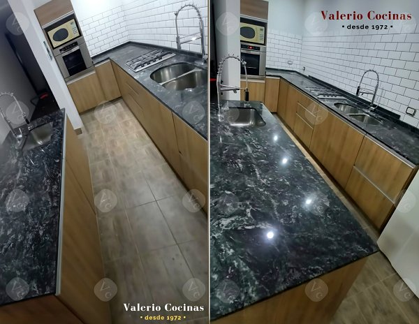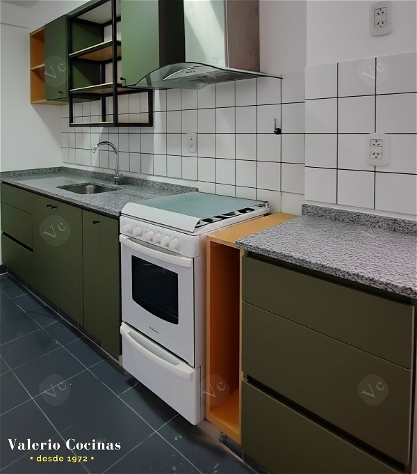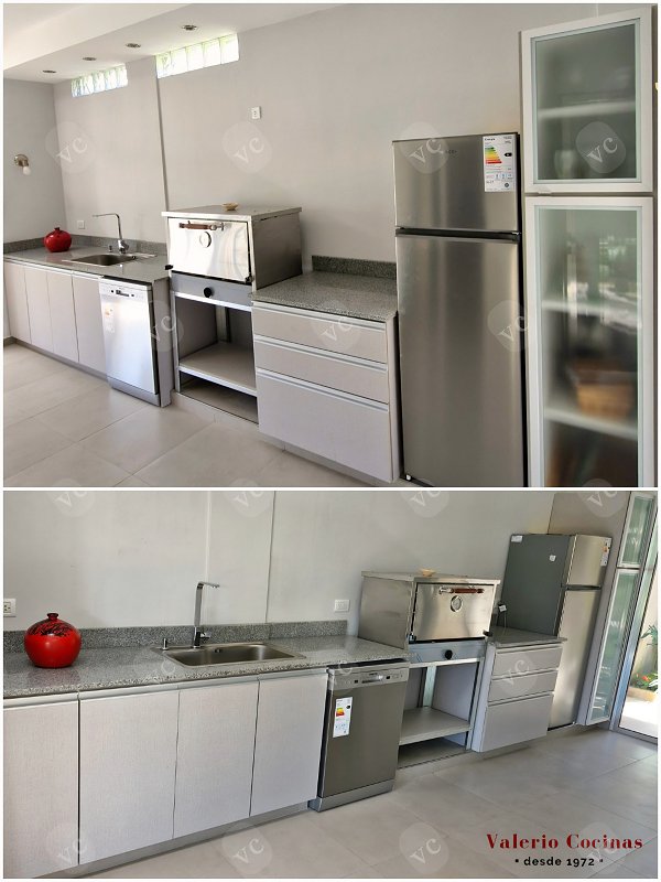 Esta línea ofrece infinidad de colores (lisos e imitación madera) y Herrajes, que junto al Aluminio/PVC le otorga una estética y protección total, sumándole a esto las puertas íntegramente de Aluminio Vidriadas en el sector de Alacenas, otorgándole una vista única y moderna para su cocina.